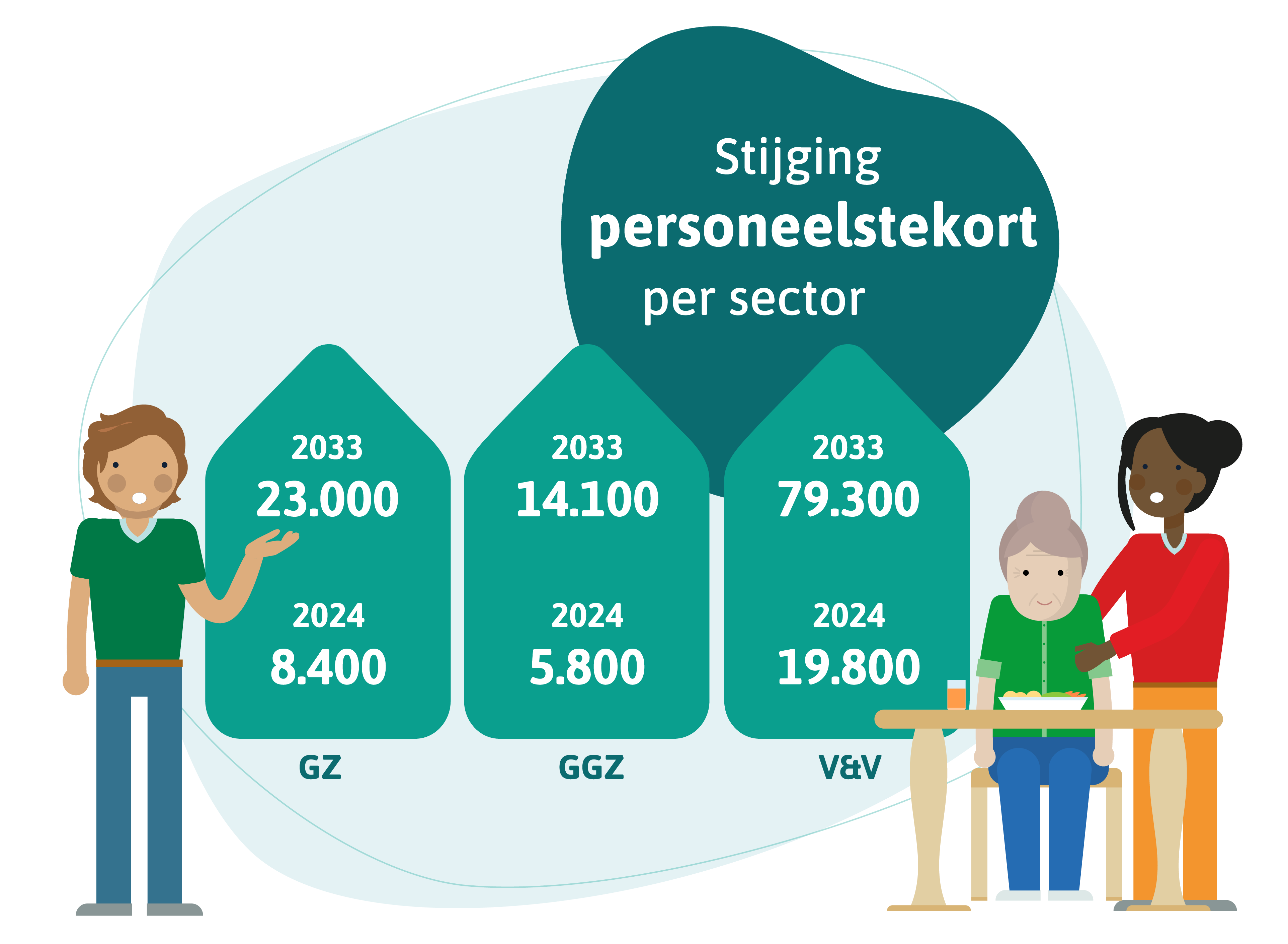 Er zijn wel honderden initiatieven gericht op de arbeidsmarktkrapte in de zorg. Deze zijn niet alleen meer gericht op werkplezier, werving en de vitaliteit van de zorgmedewerkers. Er is meer nodig om de toenemende zorgvraag en het teruglopende personeelsaanbod op te lossen. Het anders organiseren van zorg, informele zorg en arbeidsbesparende technologieën zijn hierin allemaal belangrijk. We zijn ervan overtuigd dat we door anders te organiseren en te innoveren het mooie van het zorgvak kunnen behouden zodat zorgprofessionals met plezier en trost kunnen blijven uitvoeren, nu en in de toekomst. Dat is precies wat we samen voor ogen moeten houden.