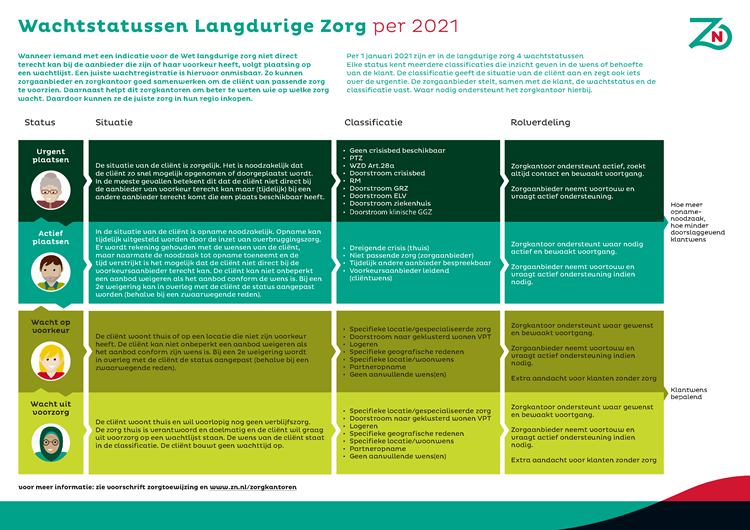 Onderstaande infographic van Zorgverzekeraars Nederland geeft uitleg per status inclusief de classificaties en de rolverdeling tussen zorgaanbieder en het zorgkantoor.